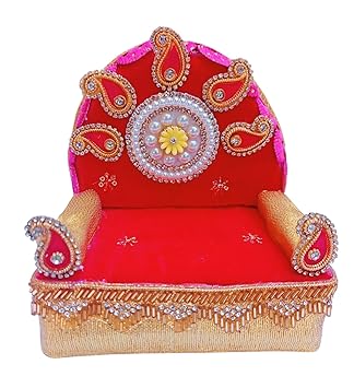 Janmashtami Special for Bal Gopal / Kanha Ji, featuring Kolkata special studded design with intricate lace work. Perfect singhasan for pooja mandir decoration and Janmashtami sringar. Available in vibrant Red color.