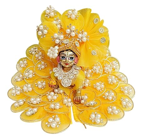 Dress your Laddu Gopal in this exquisite yellow flower stone-studded vastra, crafted specially for the festive spirit of Janmashtami. Complete with a matching pagdi to enhance the divine look.