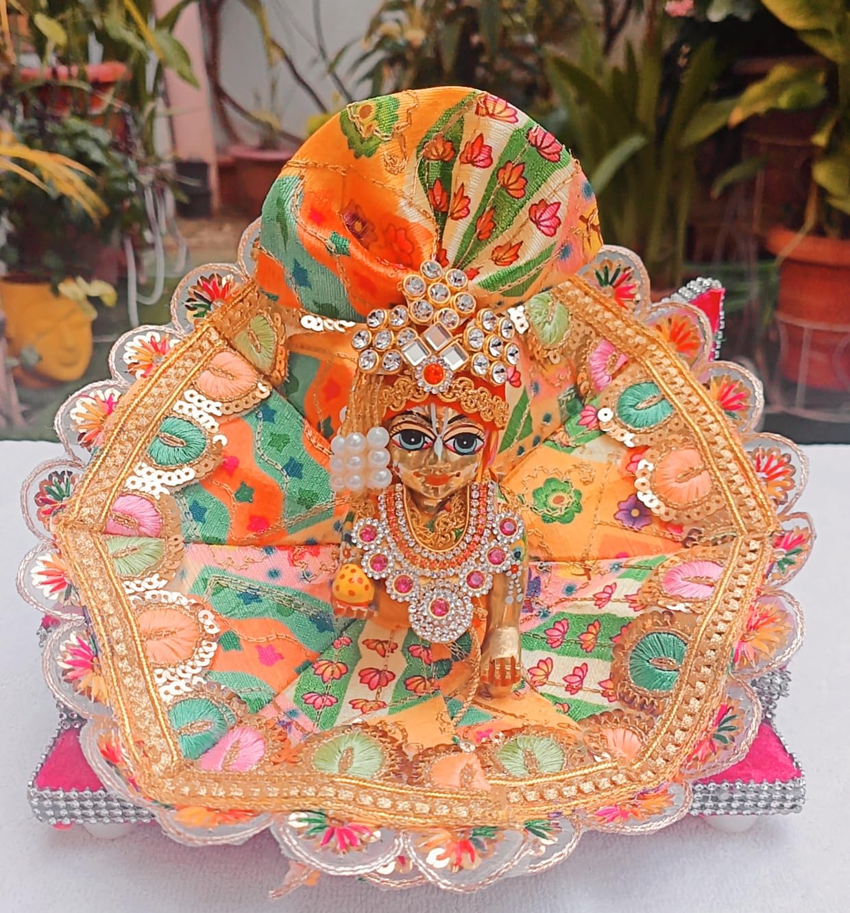 Laddu Gopal Dress for all auspicious occasions – Diwali, Holi, Ganesh Chaturthi etc. Intricate bead work, done meticulously by hand. Colour – Multicolour.