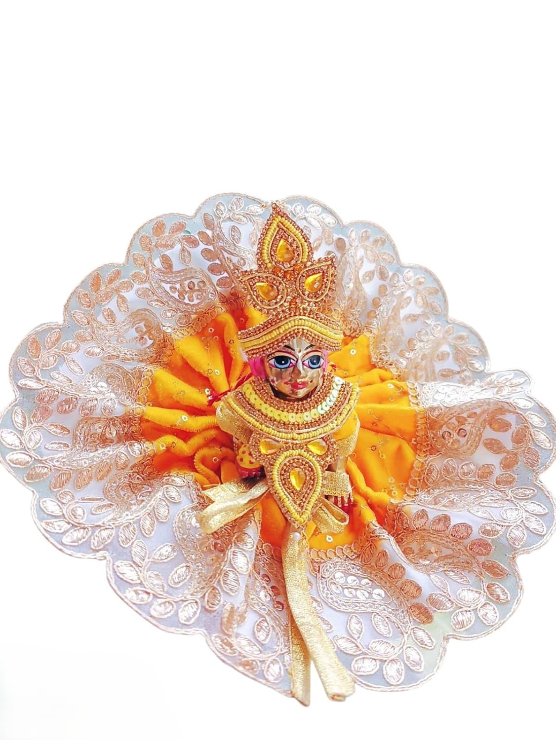 Laddu Gopal Dress for all auspicious occasions – Diwali, Holi, Ganesh Chaturthi etc. Intricate bead work, done meticulously by hand. Colour – Orange.