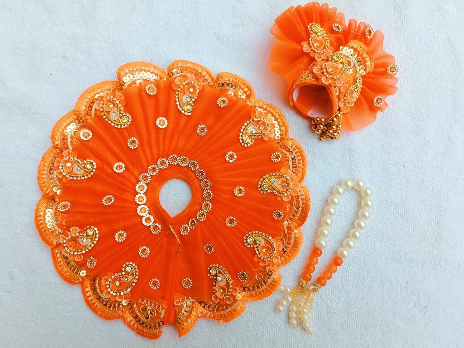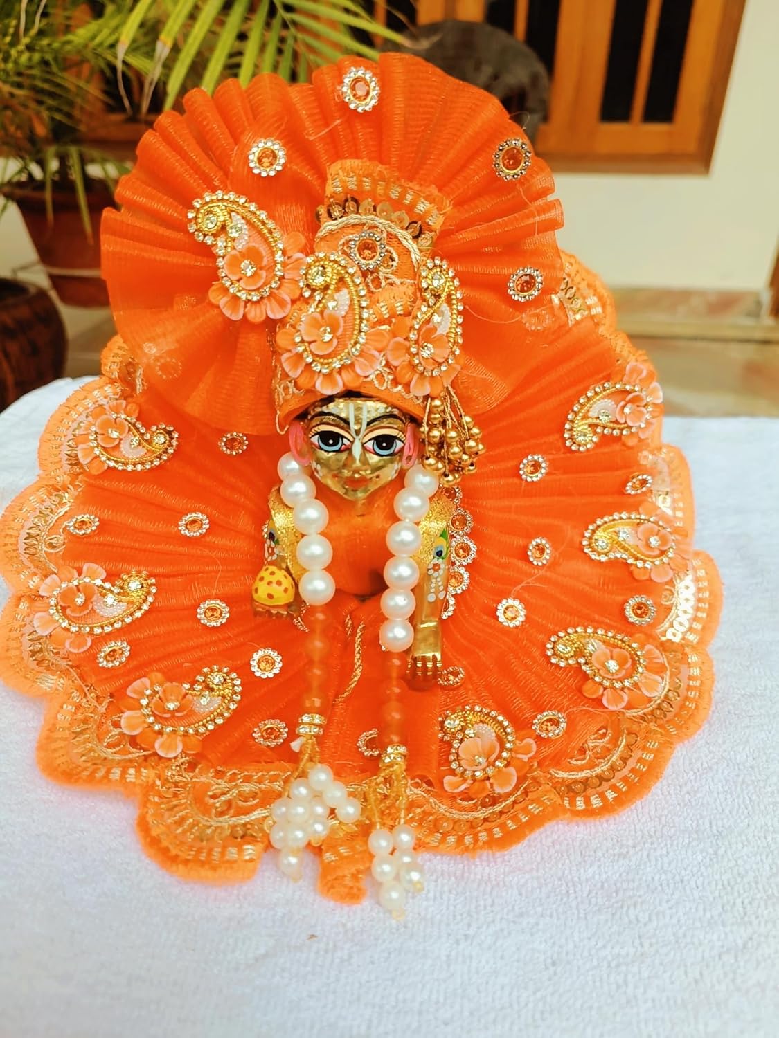 Laddu Gopal Dress for all auspicious occasions – Diwali, Holi, Ganesh Chaturthi etc. Intricate bead work, done meticulously by hand. Colour – Orange.