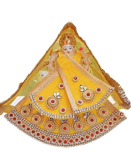 Celebrate Basant Panchami with this exquisite yellow poshak, specially crafted in Rajasthani style and export quality fabric. Perfectly designed for Saraswati Ji, Durga Ji, and Lakshmi Ji idols measuring 4 inches, this vastra brings royal elegance and festive joy to your worship.