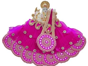 Celebrate Navratri by dressing your Maa Durga idol in this stunning 5-inch pink net vastra, featuring exquisite Rajasthani booty detailing. A perfect blend of traditional craftsmanship and festive beauty designed especially for your idol.