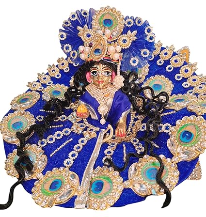 Elevate the charm of your Laddu Gopal with this beautifully handcrafted poshak in a royal blue hue. Embellished with graceful morpankh (peacock feather) patches, this poshak is a symbol of divine elegance. Comes complete with a richly designed heavy pagdi and a mala to complete the festive look.