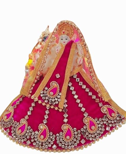 Elevate your worship with this stunning Durga ji poshak, featuring beautiful zircon and diamond studded work in a traditional Kolkata special design.