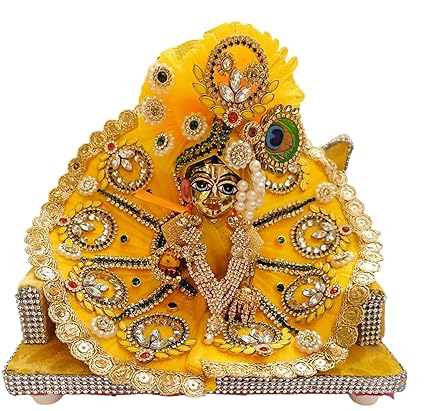 Celebrate Basant Panchami in royal elegance with this Rajasthani-themed Laddu Gopal poshak from the exclusive Premanjali collection. Crafted in traditional Dulhan style with intricate kundan booty work, this outfit includes a regal pagdi and a vibrant mor pankhβbringing festive joy and grace to your Thakurji.