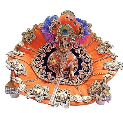 Dress your Laddu Gopal in vibrant elegance with this beautiful handmade orange poshak from the Premanjali collection. Featuring exquisite craftsmanship, this special vastra comes complete with a matching pagdi and maala, perfect for adorning your Kanha Ji during festivals and daily worship.