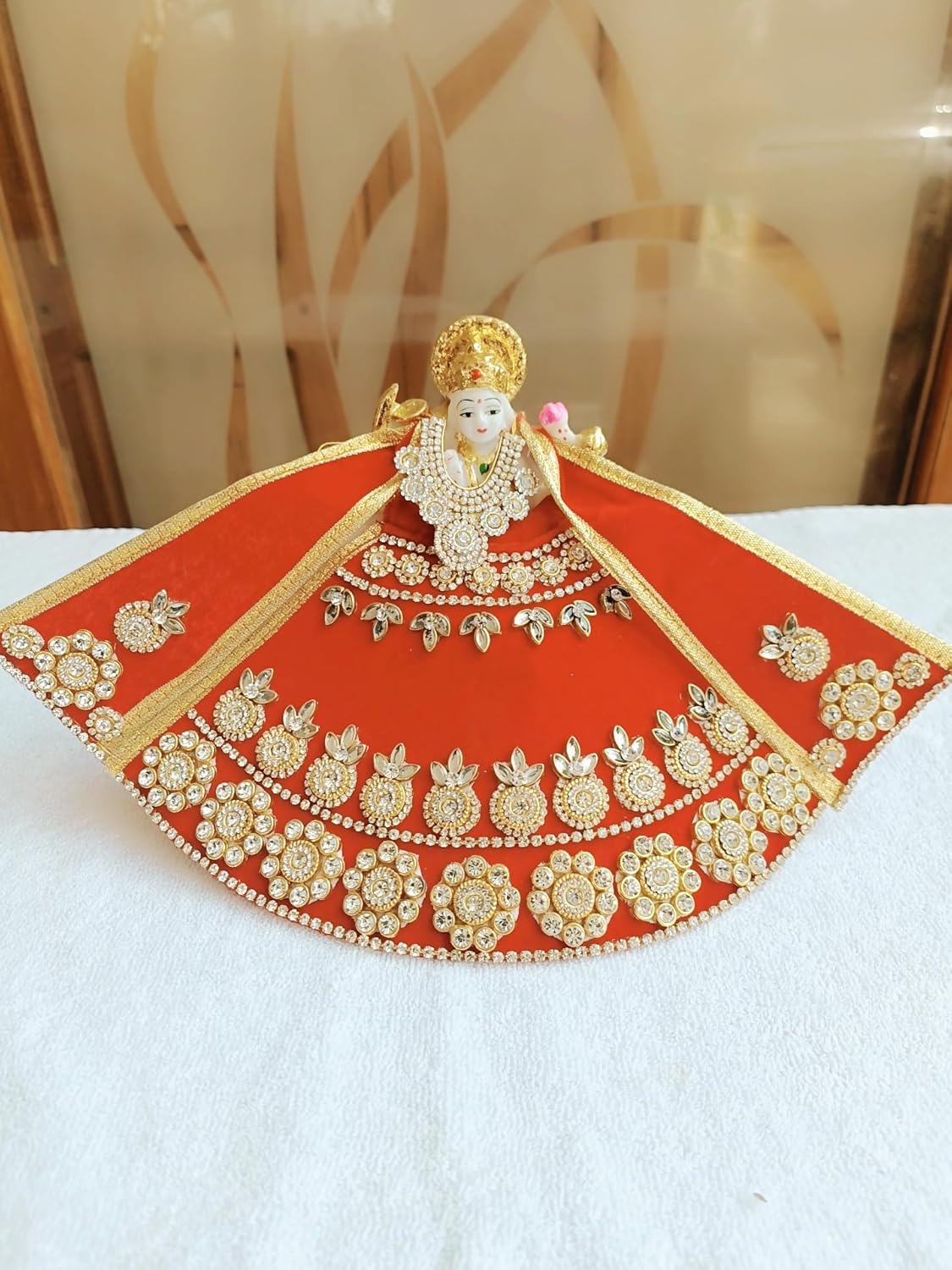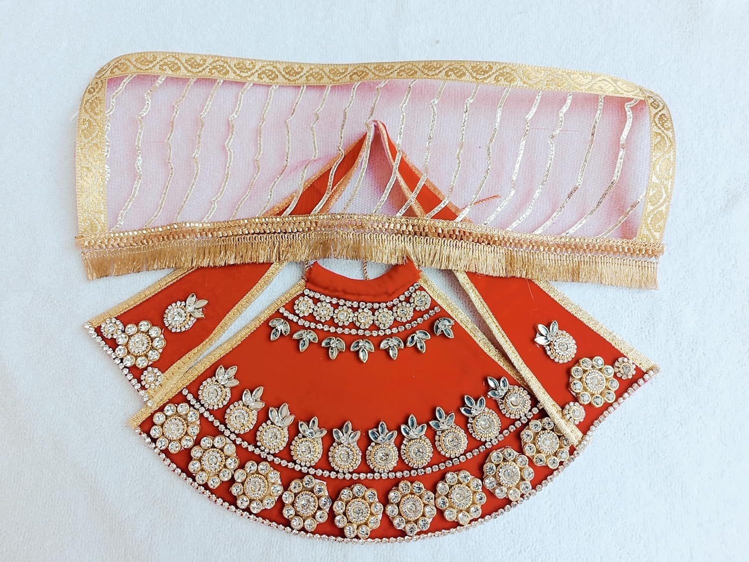 Mata Rani Dress for all auspicious occasions – Diwali, Holi, Ganesh Chaturthi etc. Intricate bead work, done meticulously by hand. Colour – Red. Free Chunri.