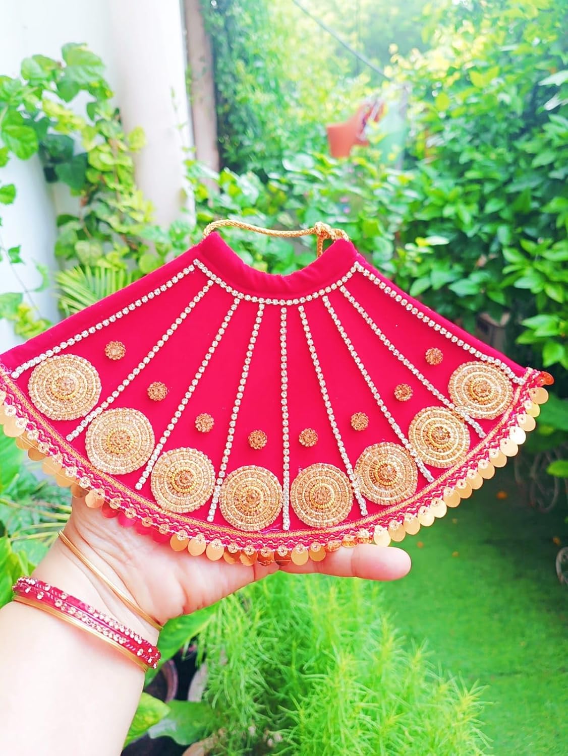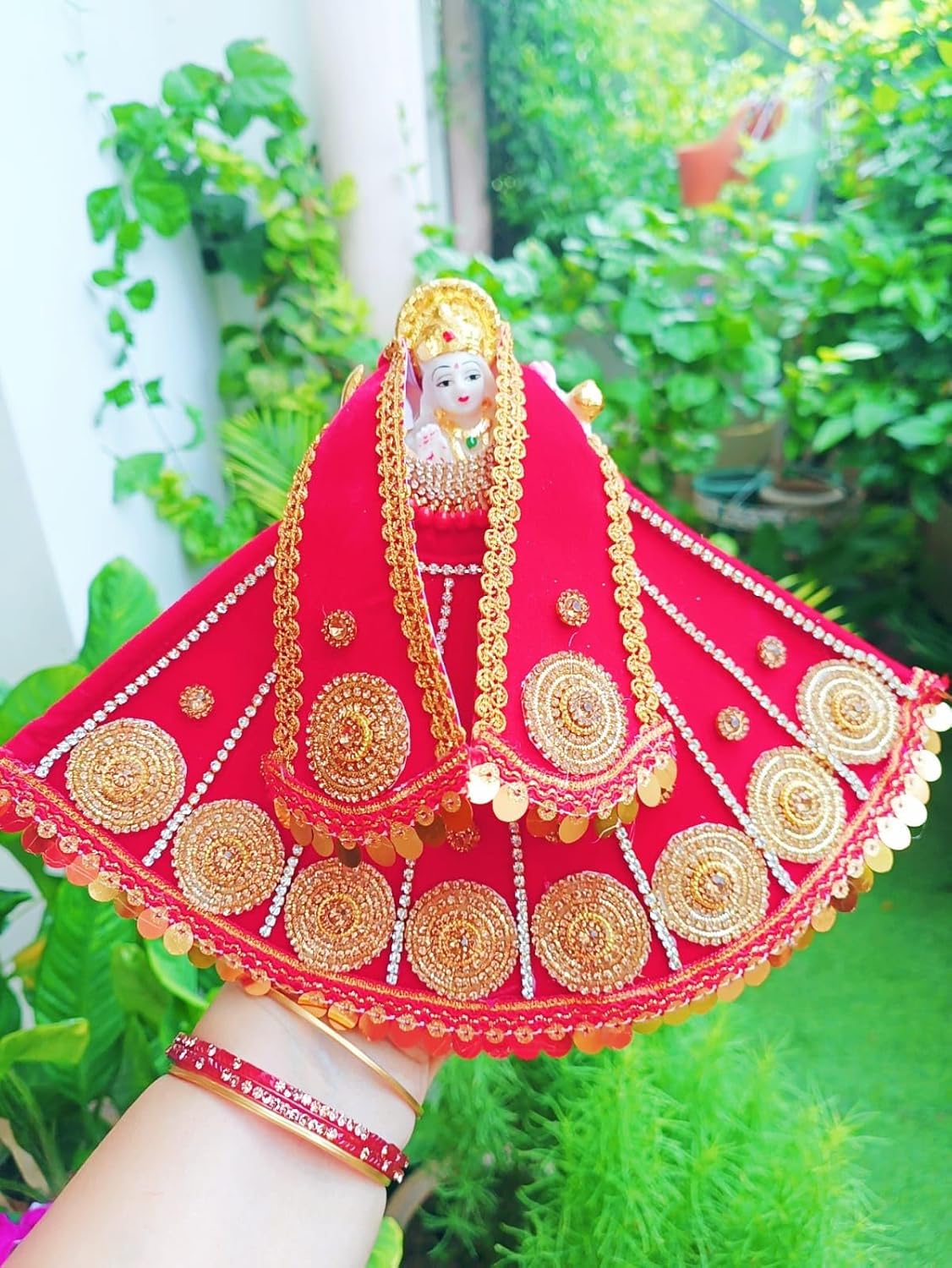 Mata Rani Dress for all auspicious occasions – Diwali, Holi, Ganesh Chaturthi etc. Intricate bead work, done meticulously by hand. Colour – Red. Free Chunri.