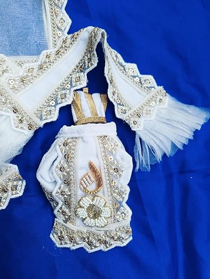 Laxmi Ganesh/ Radha Krishna Dress for all auspicious occasions – Diwali, Holi, Ganesh Chaturthi etc. Intricate bead work, done meticulously by hand. Colour – White. Free Chunri.